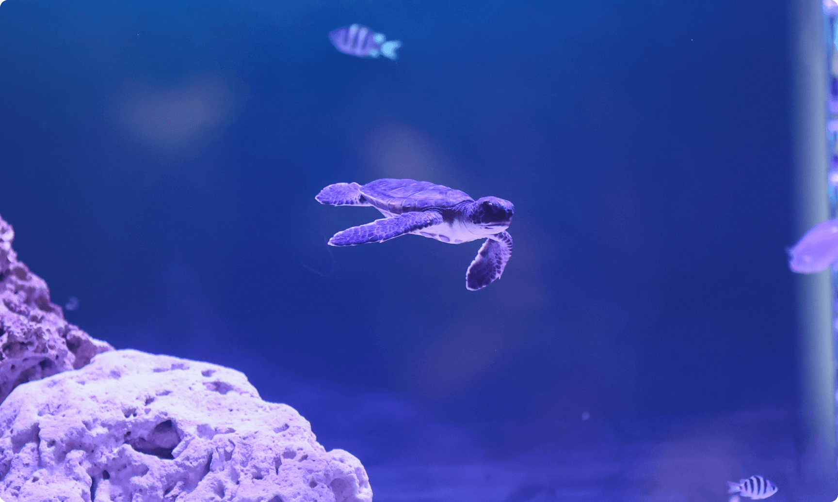 小笠原村の協力により再現した、どこまでも青く濃く、透き通った水槽の色「ボニンブルー」も特徴。
