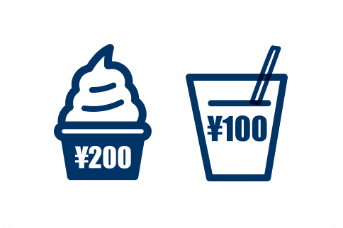 ソフトドリンクが100円、ミニソフトクリームが200円に