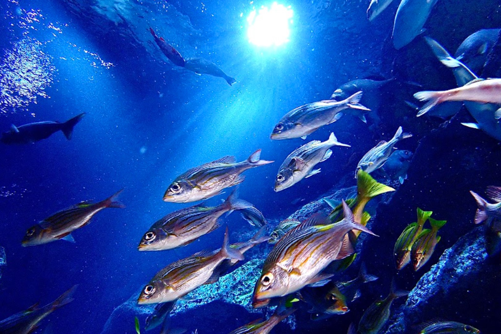 すみだ水族館の小笠原大水槽は、その水中景観を表現しています。
