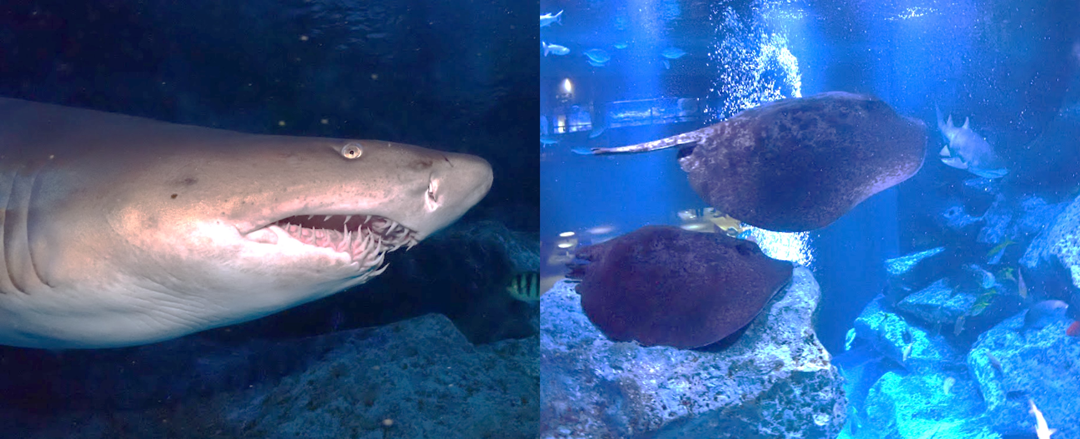 シロワニ、マダラエイなど開業時からずっと暮らしている魚もいますが、寿命などで数が減ってしまう種類もいます。