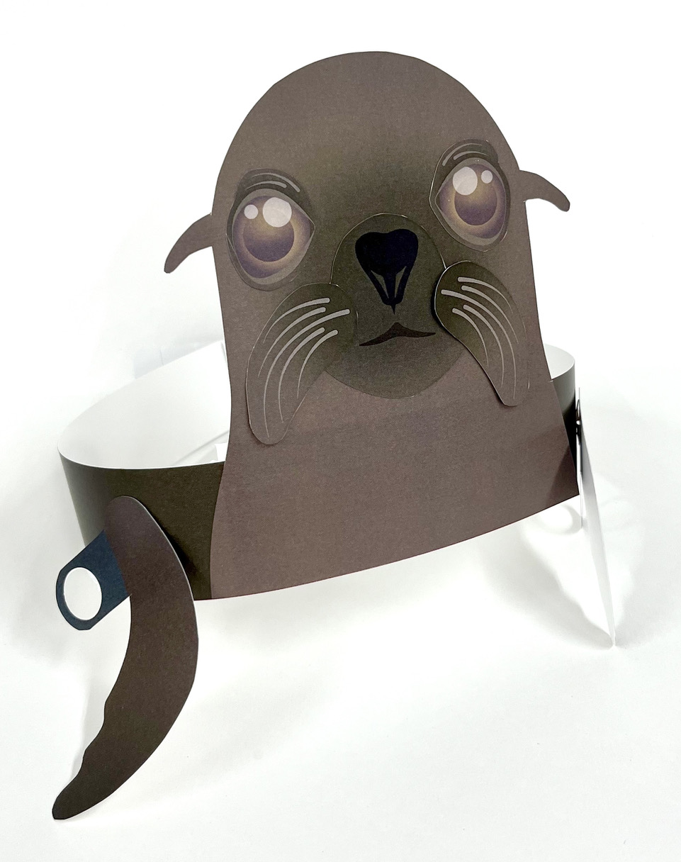 オットセイの顔をじっくりと観察しながら福笑いのように耳や目をのり付けしてお面を作ります。完成したお面は前あしをぱたぱたと動かして遊ぶことができます。ぜひ、完成したお面をみんなでかぶり、オットセイだらけの空間をお楽しみください。オットセイが身近に感じられるワークショップです。