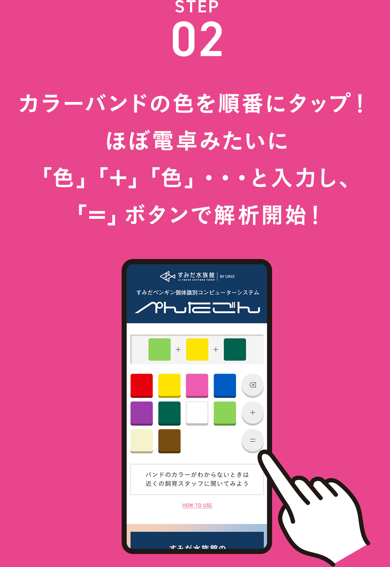 カラーバンドの色をタップ&プラス&イコール