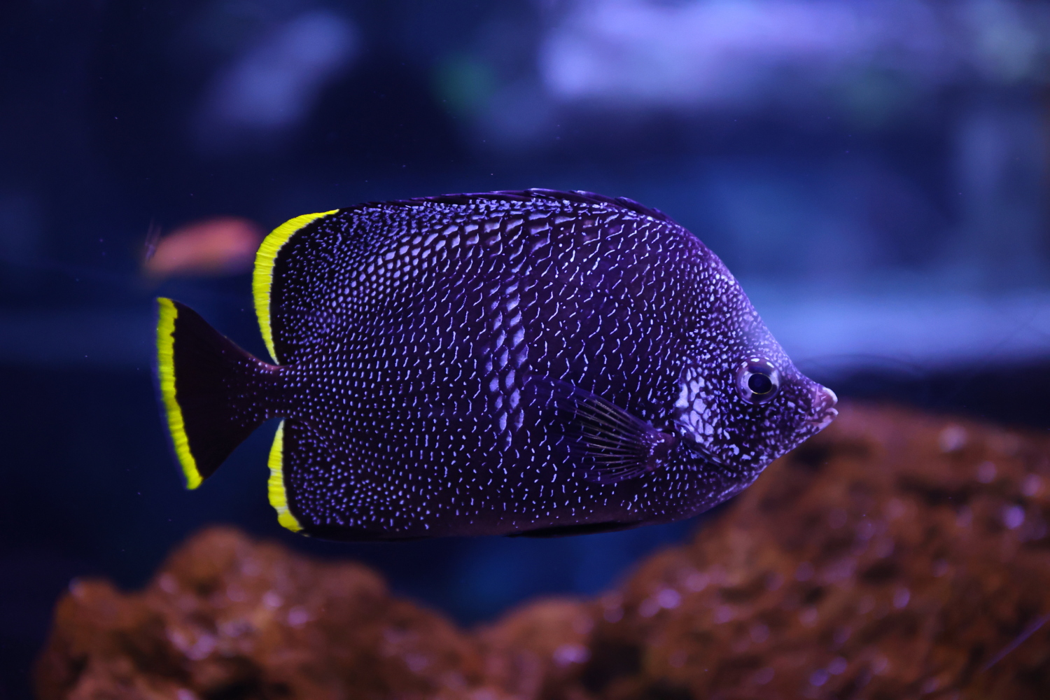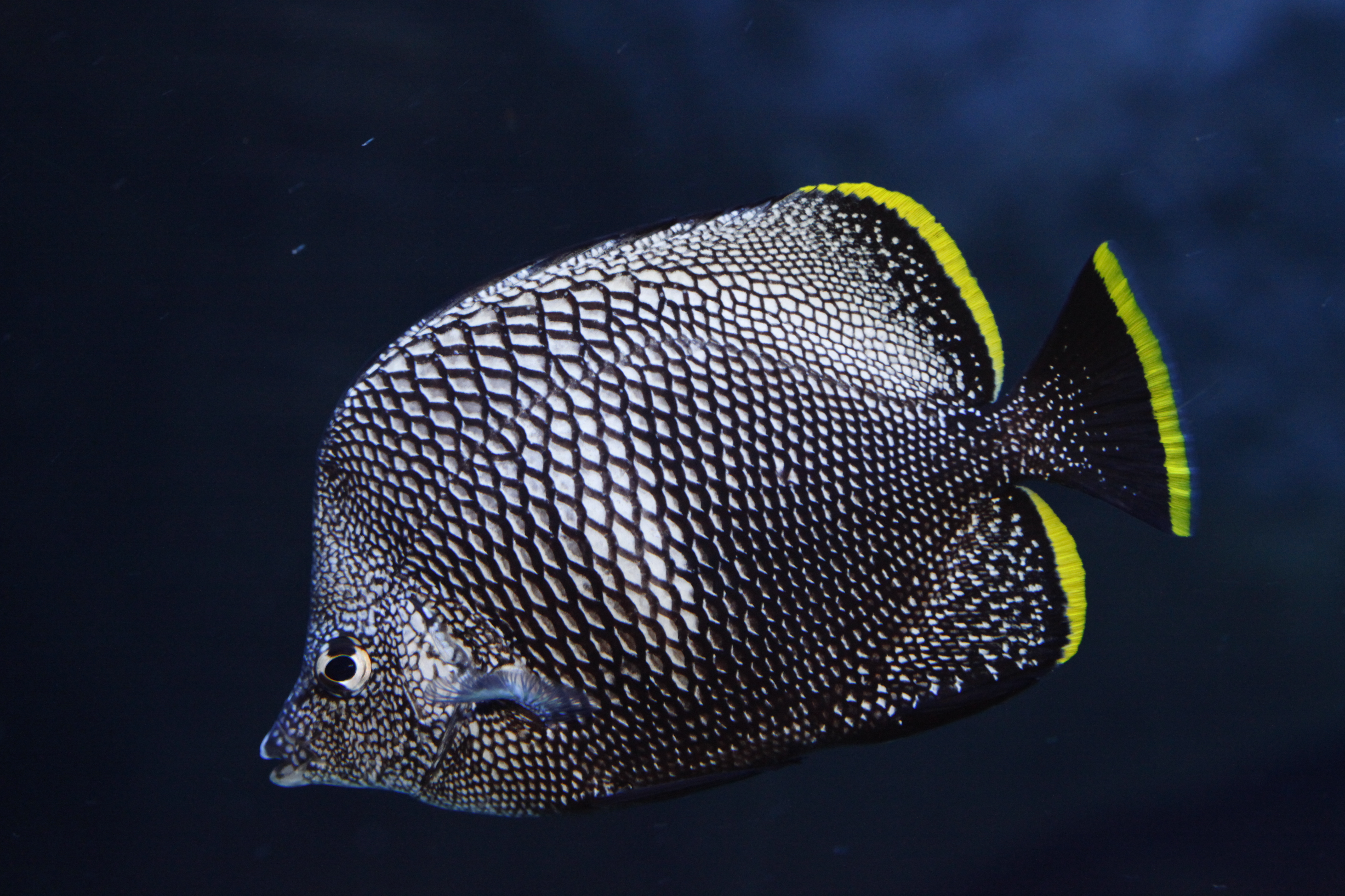 ヒレの後方部は鮮やかな黄色をしており、体の黒と白を基調としたきめ細やかな模様はさに友禅染のよう。日本近海かつ限られた地域にのみ生息する日本固有種で、小笠原諸島では一般的にみられる。