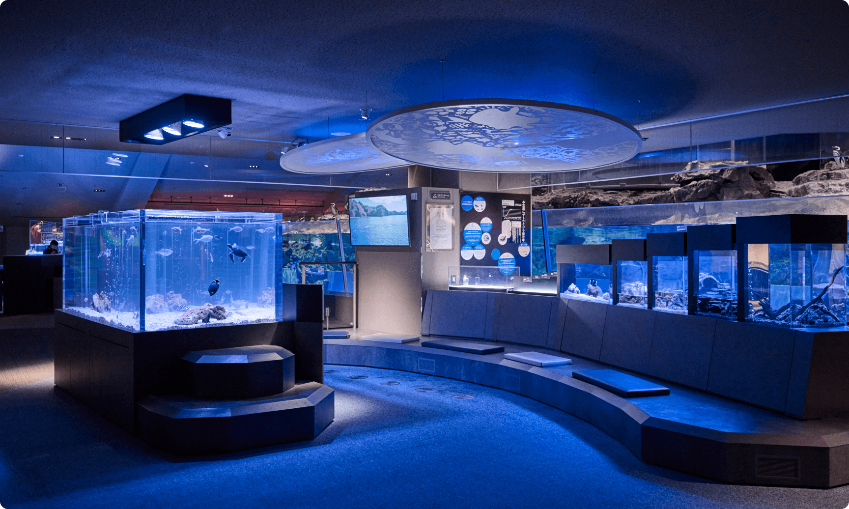 小笠原村の協力により再現した、どこまでも青く濃く、透き通った水槽の色「ボニンブルー」も特徴。