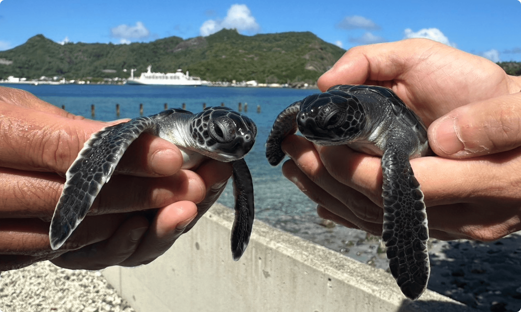 アオウミガメの赤ちゃんにも出会える。