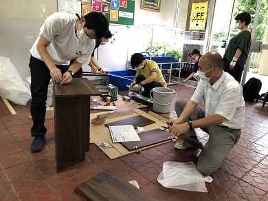 メダカは、中学校の池と校内の水槽、隣接する小学校内の水槽で育てられることが決まり、先生方にも水槽設置のご協力をいただくなど、各所で準備が進められました。