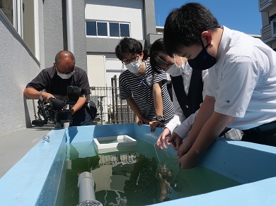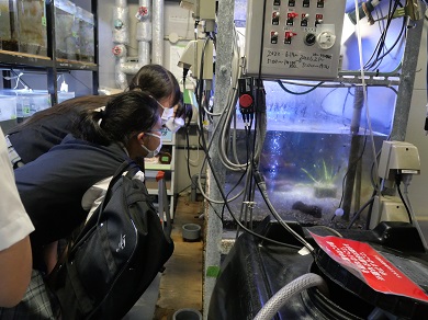 夏休みの期間には、生徒のみなさまを水族館に招待して、メダカを間近で観察していただくとともに、いきもののいのちを預かるうえで大切にしてほしいことを伝えました。