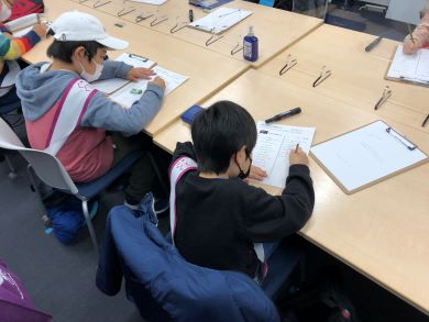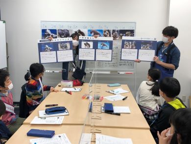 ワークシートを活用し、参加した子どもたちが自分自身の学校での暮らしとペンギンの一日を比較し、人間と共通している点や、異なっている点を知ってもらいました。