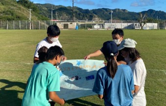 小笠原村立小笠原小学校の皆さんへ、無事に海へ送りとどけたことを報告!