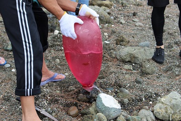 ビーチクリーンの場所へ移動し、全員で手分けをして開始。ゴミの種類を仕分けつつ、力をあわせて拾っていきます。最終的には、海外の漁具や、プラスチックの浮き球などを回収。回収量は約2㎥に到達しました。