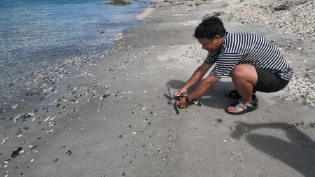 今回はメインの活動でもあるアオウミガメの赤ちゃんを海へ還し、新しい赤ちゃんをお預かりすることに加えて、少しだけ清掃活動も行ってきました。当館では今年4月に父島でビーチクリーンを実施していますが(コラム:今年もアオウミガメの産卵地を清掃!「小笠原諸島ビーチクリーン」)、今回の渡航期間中は海浜清掃のイベントが実施されており、すみだ水族館も少しだけお力添えをさせていただきました。眼下に広がる美しい自然の中に映る漂着ゴミを目の当たりにして、誰かが困っている現実があり、環境共生の大切さについて改めて考えさせられました。今後ますます、美しい自然やいきものなどの魅力を紹介するとともに、環境に対する課題解決など私たちにできる取組を続け、発信していきたいと思う旅となりました。今回お迎えした「ハート」と「ロック」を通じて、このような想いで取組を続けていきたいと思います。