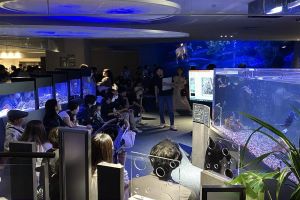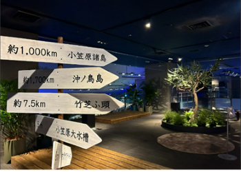 すみだ水族館は2012年の開業より小笠原村と連携し、東京にある世界自然遺産を発信する活動を続けています。2023年9月には、新たに情報発信基地「オガサワラベース」を設置し、小笠原大水槽とひとつながりの「小笠原」エリアとして刷新。活動の再スタートを切りました。