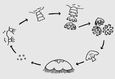 ミズクラゲのポリプ、ストロビラ、エフィラ