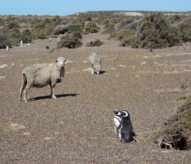 ヒツジとペンギン(ヒツジは放牧されているもの)