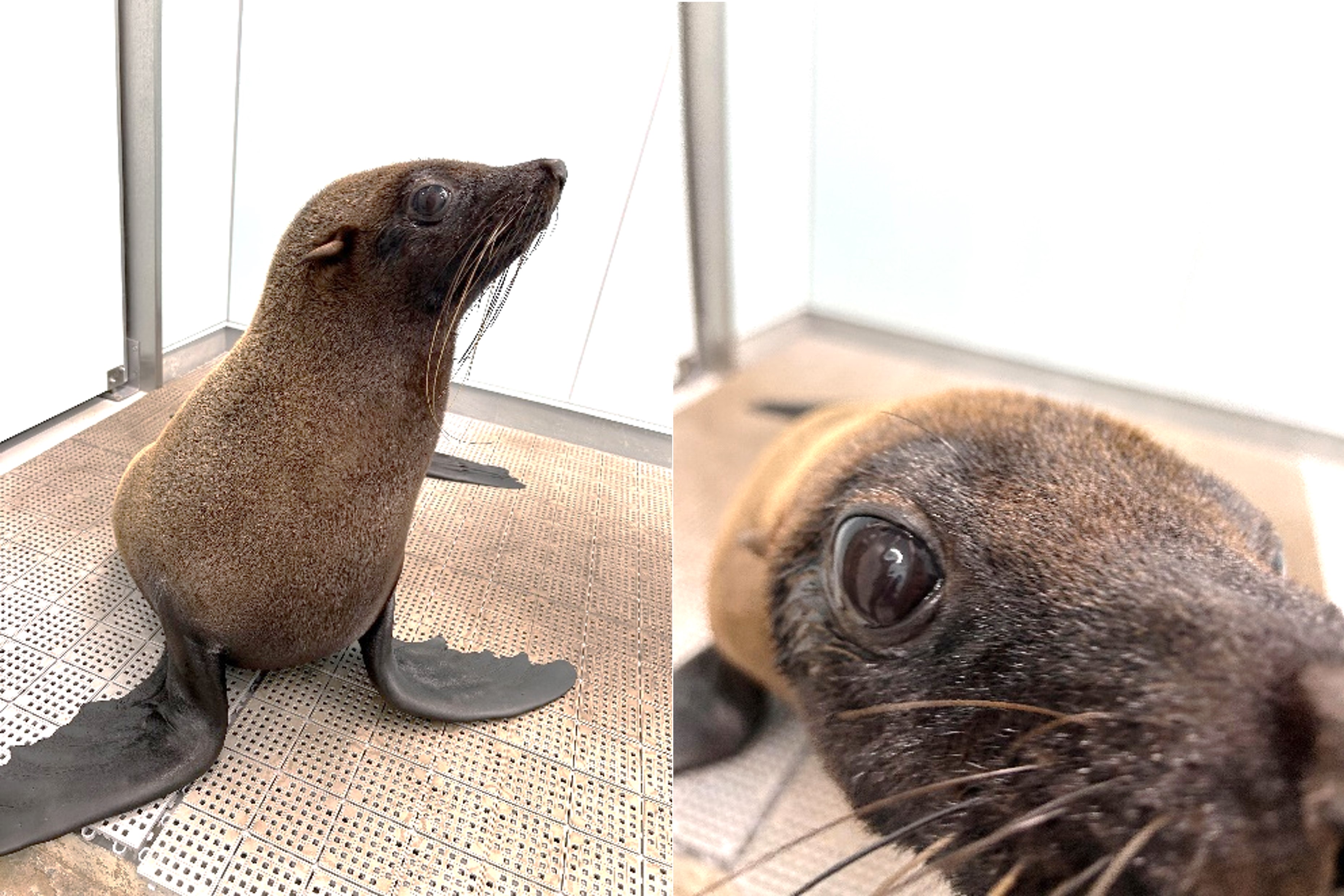 どうですか?寝起きのオットセイ、最高にかわいいでしょう?これ本当にオットセイ?と感じた方もいるかもしれませんが、皆さんが思っているよりもオットセイは毛がふさふさ!まるでクマのような顔をしていますよね。それもそのはず、オットセイの学名「Arctocephalus australis」は南にいるクマの頭を持つ動物という意味。系統としても可愛い動物の代表格であるイタチやレッサーパンダ、クマに近い動物なのです。館内の電気が付くとすぐ泳ぎに行ってしまい、なかなかみなさんに見てもらう機会がないけれど、この寝起きのオットセイの可愛さをぜひ見ていただきたい!と思い、真っ先にご紹介しました。乾いてふさふさのオットセイはかわいいですが、なかなかキツめの獣の臭いがします。でも動物の肉球のにおいが好きな方にはたまらないかもしれませんね。わたしは好きです!