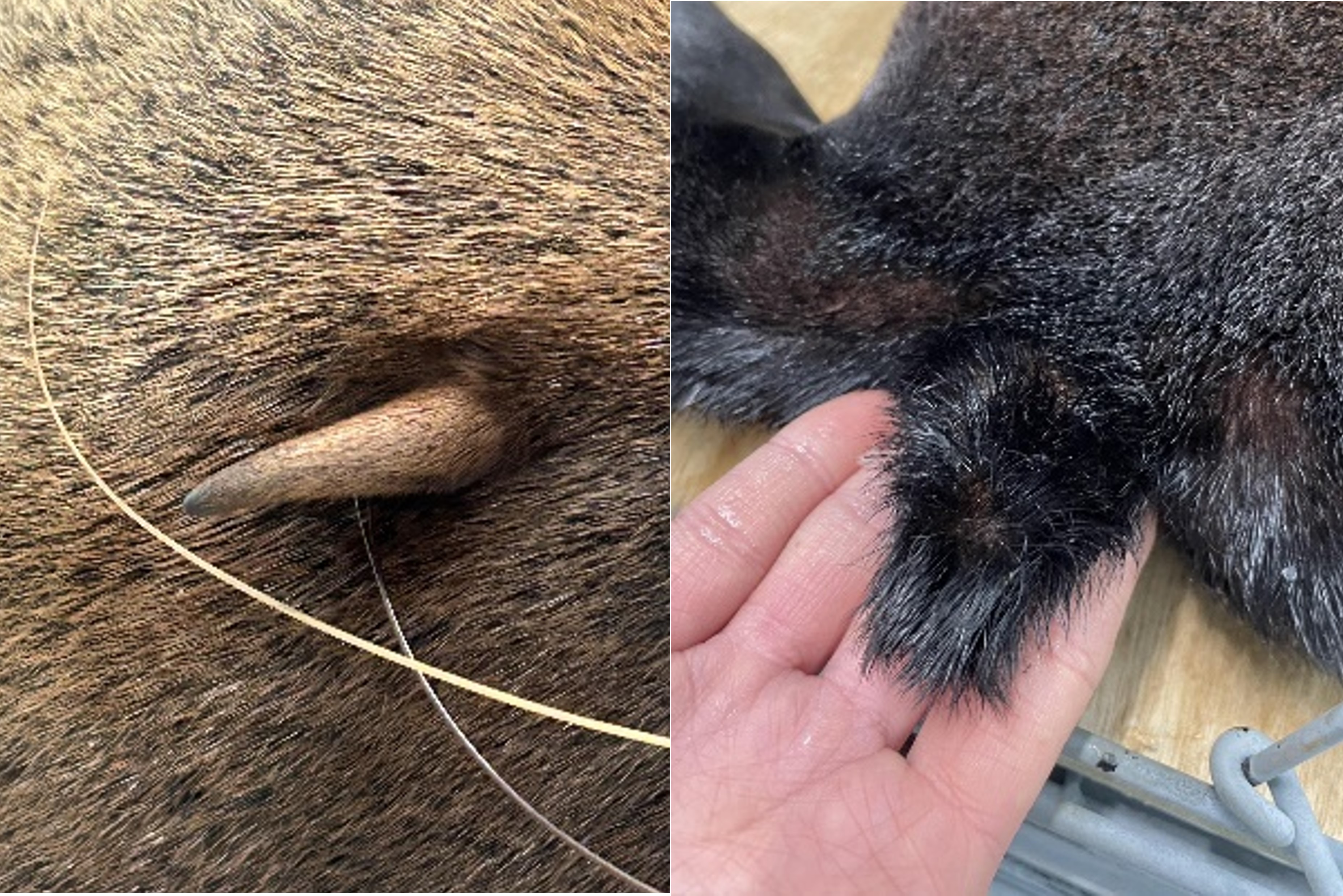 「サブリ」の耳介(左)と「サブリ」のしっぽ(右)
