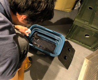 船には、犬や猫などのペットを預けるためのペットルームという部屋があり、アオウミガメの赤ちゃんたちもそこへ預けます。