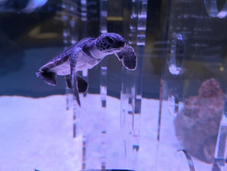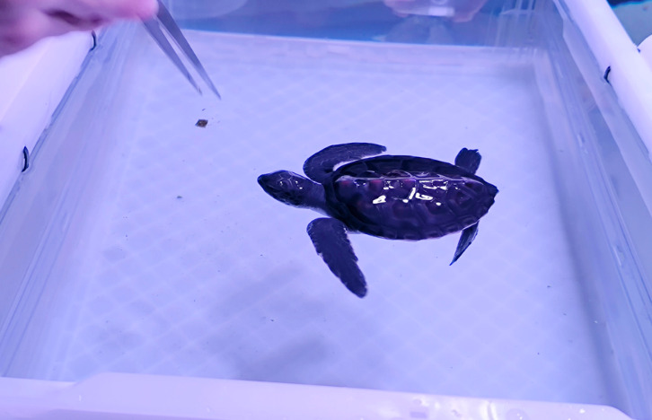 すみだ水族館にやってくるアオウミガメの赤ちゃんは、小笠原海洋センターの水槽で保護された、その年に生まれた赤ちゃんたちの中から選びます。