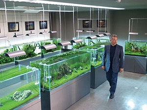 このネイチャーアクアリウムという表現と技法は、株式会社アクアデザインアマノ(新潟県)の創業者である故 天野尚氏が1980年代に提唱したものです。観賞魚飼育の世界では広く普及しており、既にご存知の方もいらっしゃるかもしれません。すみだ水族館の自然水景エリアの展示水槽は、天野氏ご自身が構想し制作されたものです。国内の水族館において、氏が手がけた唯一のネイチャーアクアリウムとして、現在も株式会社アクアデザインアマノの協力のもと、開業当時と変わらぬ景観が維持されています。