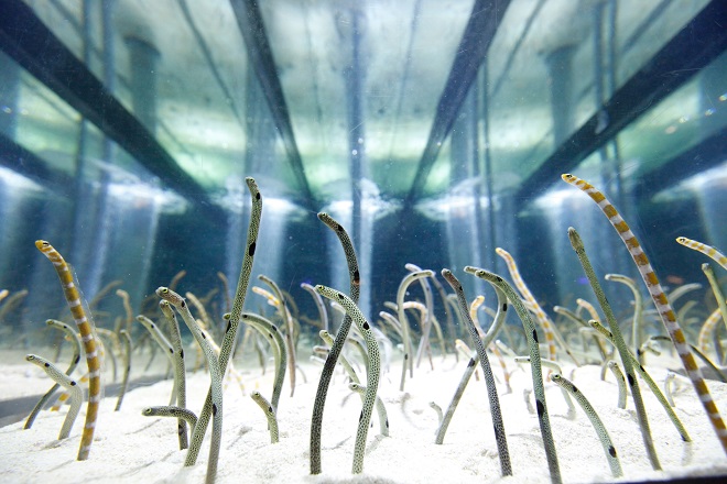 6階「サンゴ礁」ゾーンにあるチンアナゴ水槽。