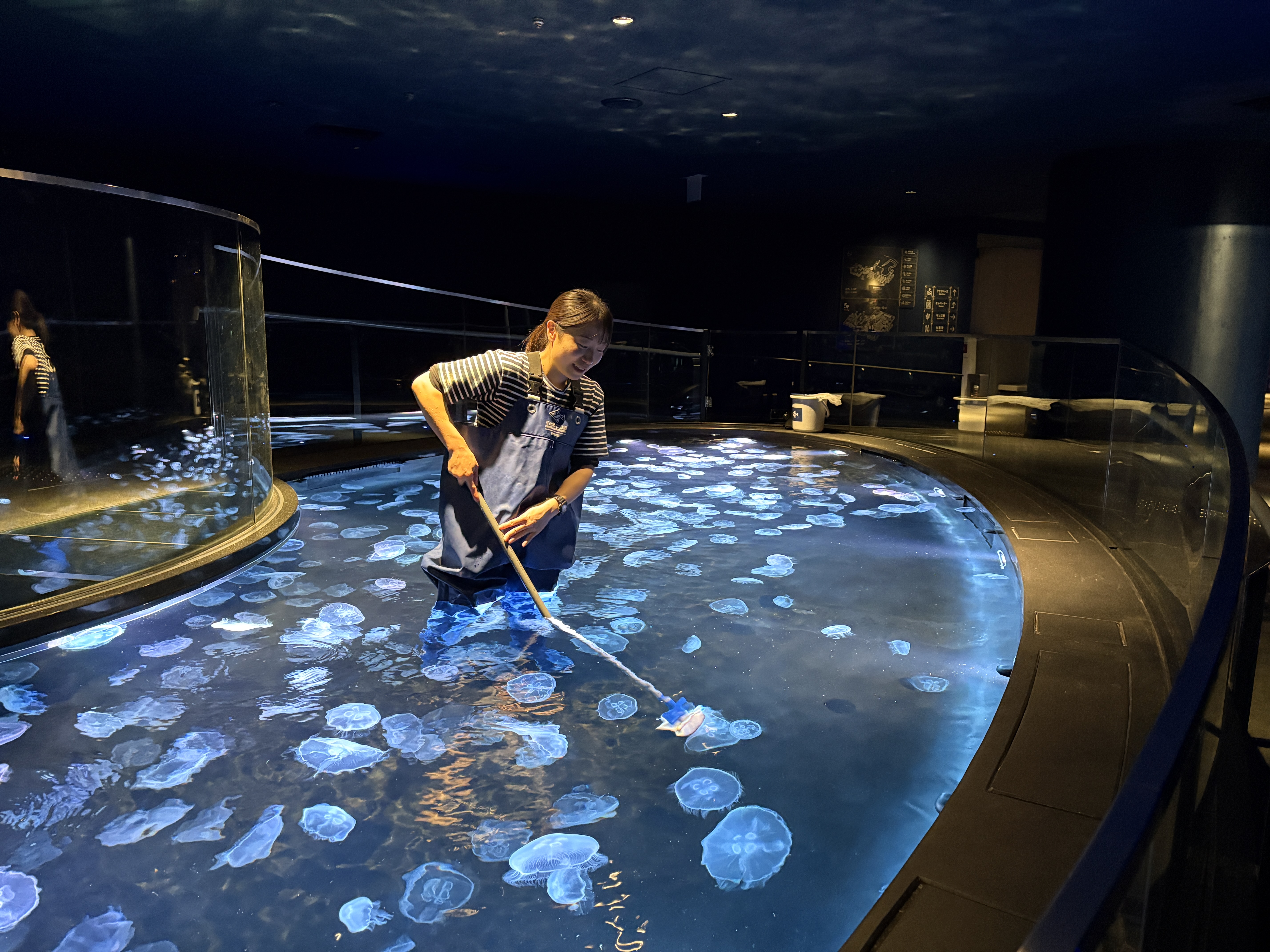 アクリル板を通さず約500匹のミズクラゲを上から観察できる人気の展示「ビッグシャーレ」の清掃作業を見学できるプログラムです。普段は閉館後に実施している作業を開館中に初公開します。「ビッグシャーレ」がどのように美しく保たれているのか、清掃に取り組む飼育スタッフの真剣な姿とともにぜひお楽しみください。