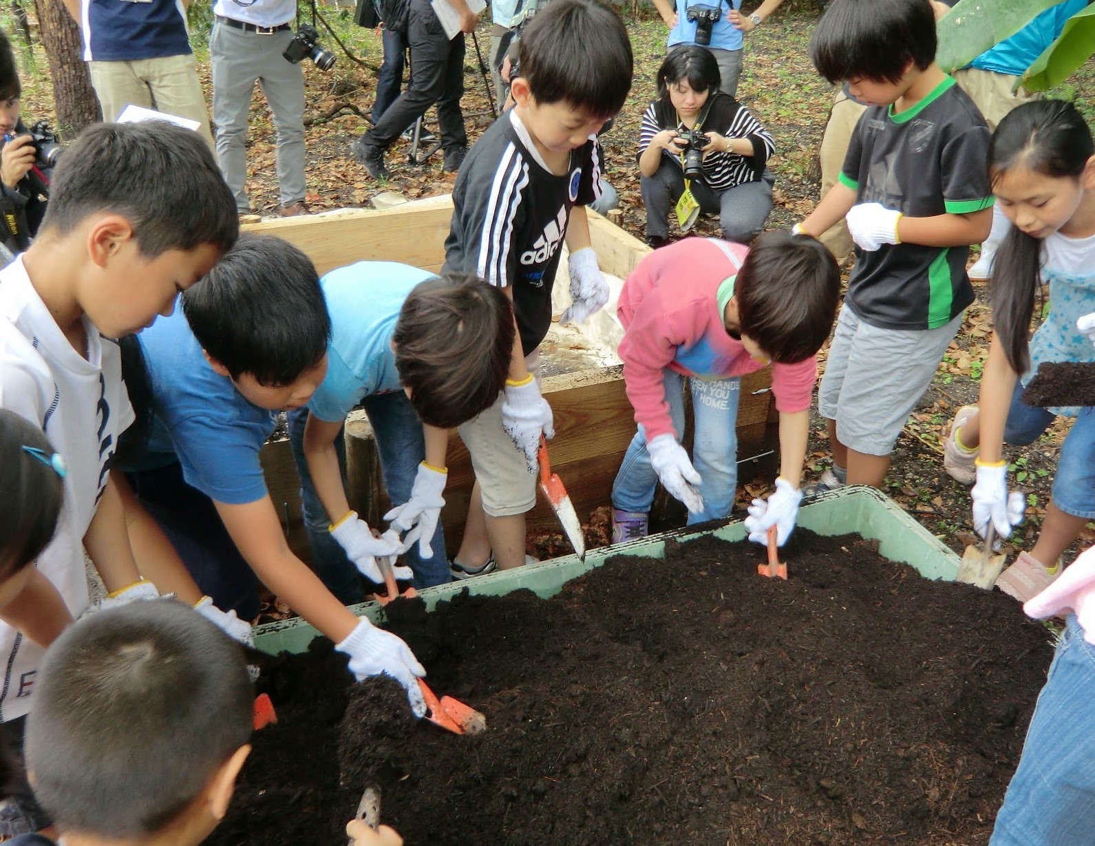 京都の原風景を再現した「京の里山」エリアでは、水、いきもの、食物、そして人とのつながりや、生物多様性の大切さを伝えています。また、近隣の小学校と連携し、田植えから脱穀・精米・しめ縄づくりまで、昔の人々の苦労を体験しながらお米を育てる過程を学ぶほか、四季折々の姿を見せる里山で一年を通じて授業を行っています。