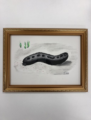・飼育スタッフが愛をこめて描き販売したが売れ残った「クロナマコの絵」ほか