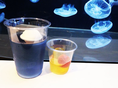 さらに、期間限定ドリンクとして、色が変わる不思議な「クラゲのライムミントティー」を販売します。