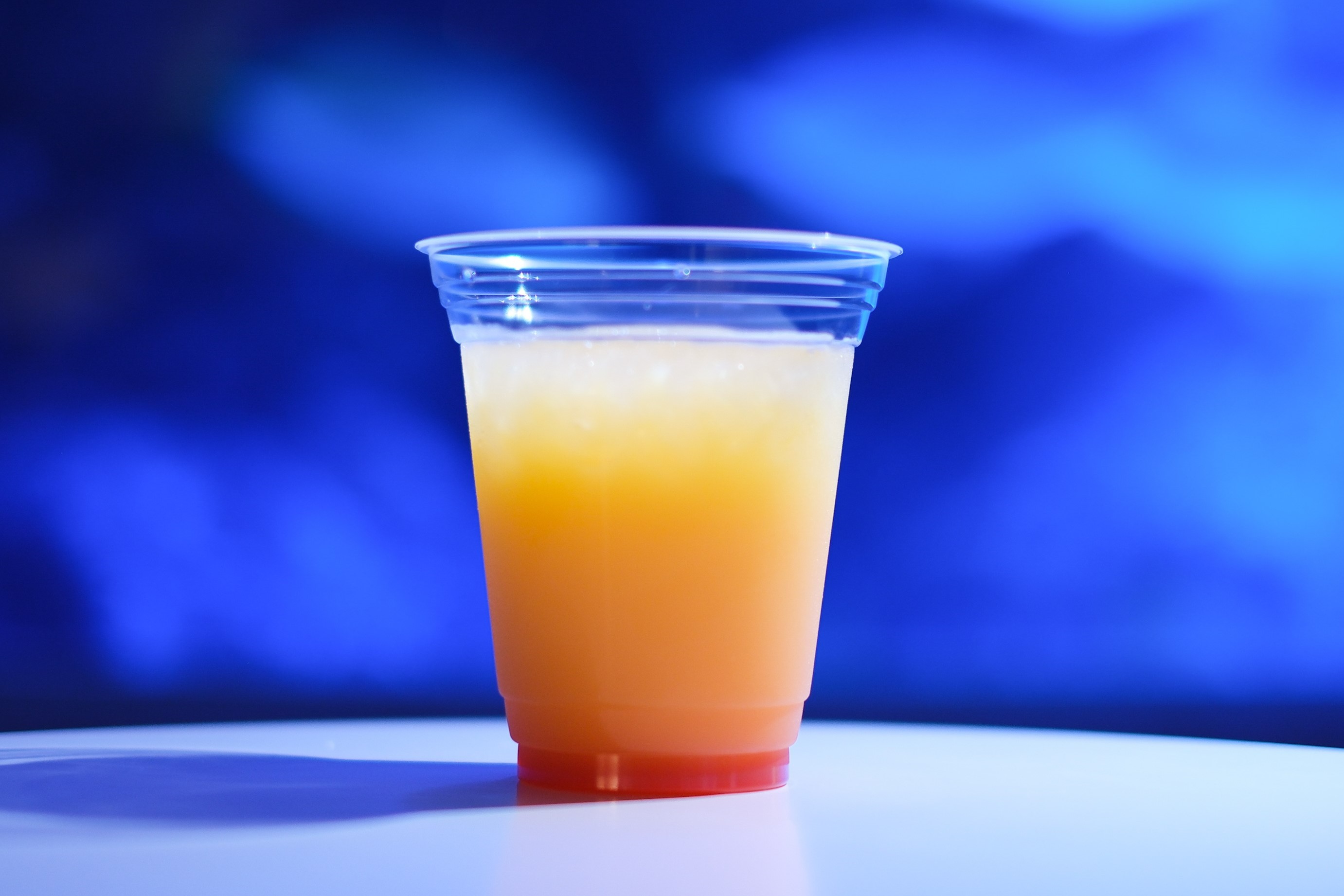 小笠原産パッションフルーツ果汁入りのカクテル風ドリンク。海辺の夕暮れをイメージしました。ノンアルコールなので、お酒の苦手な方や妊娠中の方でもお楽しみいただけます。