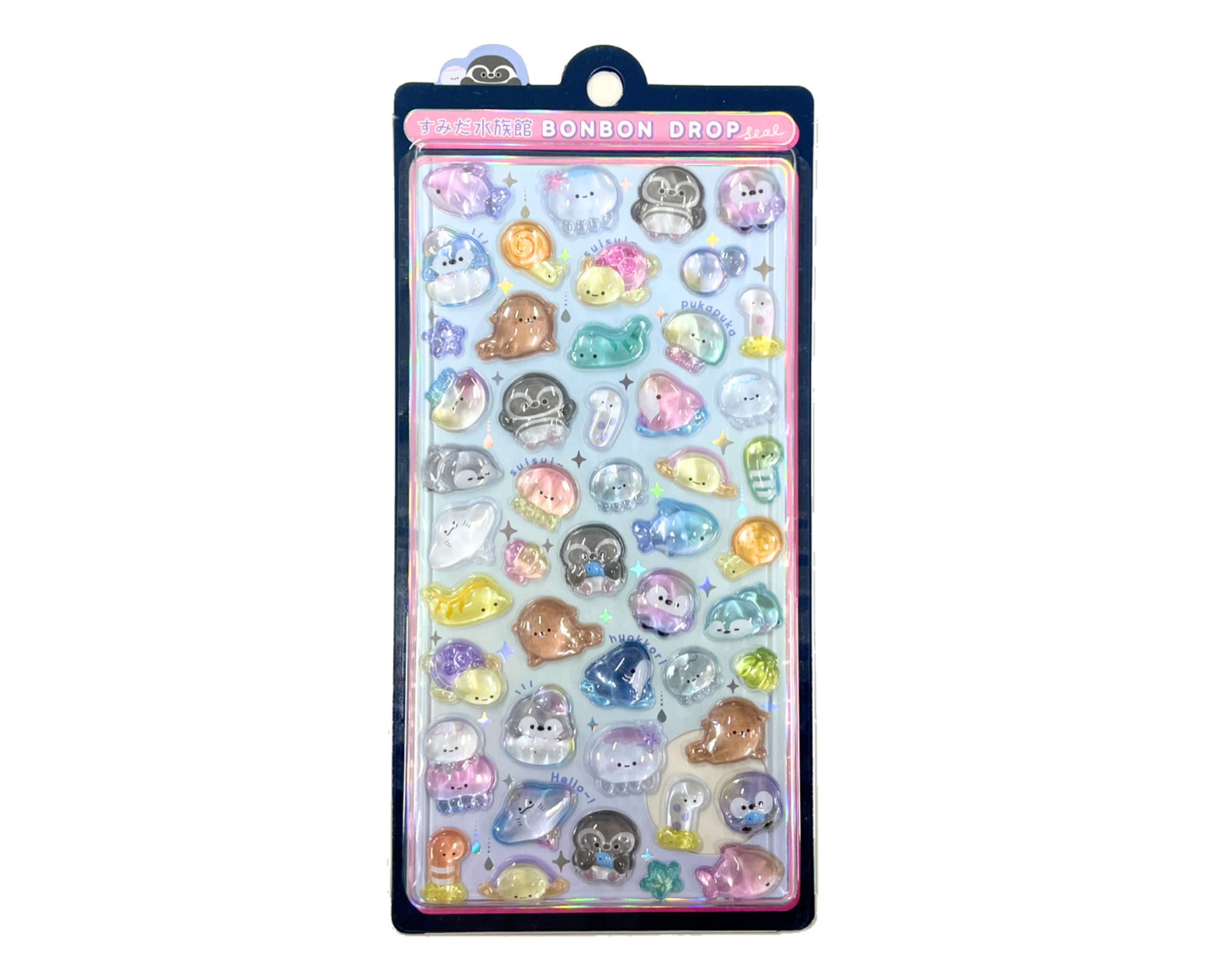 すみだ水族館で暮らすいきものたちをモチーフにした、ぷっくりつやつやの当館オリジナルシールです。今回のイベントにあわせて新しい仲間「マイマイ」が追加されました。