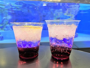 定番商品「すみペンカクテル」に、新フレーバー「魅惑のフジ」が登場。すみペン一番のモテ女「フジ」をイメージし、ピンクレモンシロップとブルーハワイシロップで魅惑の色合いに仕上げました。混ぜると「フジ」が身に着けているカラーバンドの色と同じ紫色になります。ウォッカ入りのカクテルと、ノンアルコールのモクテル※5を販売します。
