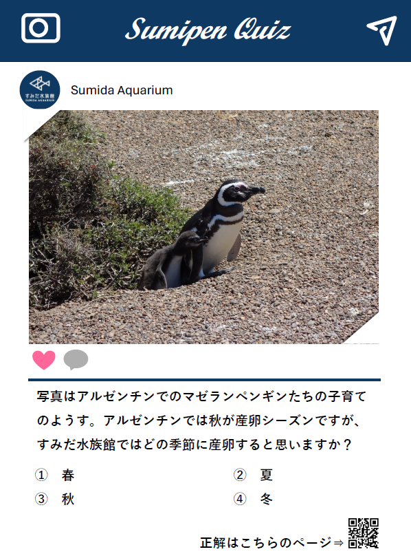 飼育スタッフがアルゼンチンで撮影した写真をSNS風のパネルにして展示します。パネルには写真だけでなく、ペンギンの生態にまつわるクイズを記載しています。クイズに答えながら、野生下で暮らすマゼランペンギンのことを楽しく知ることができます。