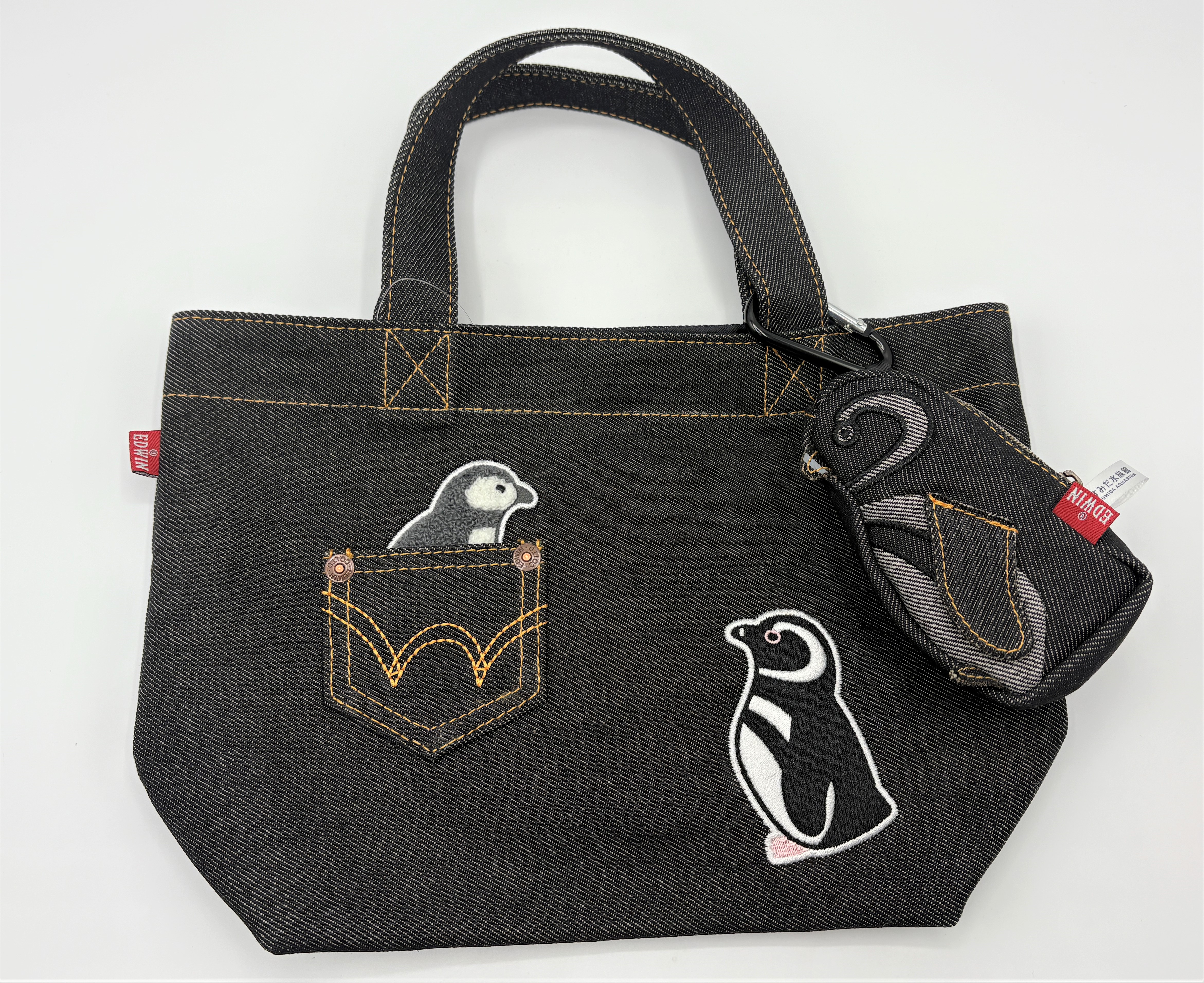 開業14周年を記念し、老舗デニムブランド「EDWIN」とコラボレーションした新商品を発売します。当館で暮らすマゼランペンギンをデザインしたぬいぐるみや金具でバッグやベルト通しに装着できるカラビナポーチ、トートバッグなど、ご自宅やお出掛け先でも楽しめるアイテムを取りそろえました。